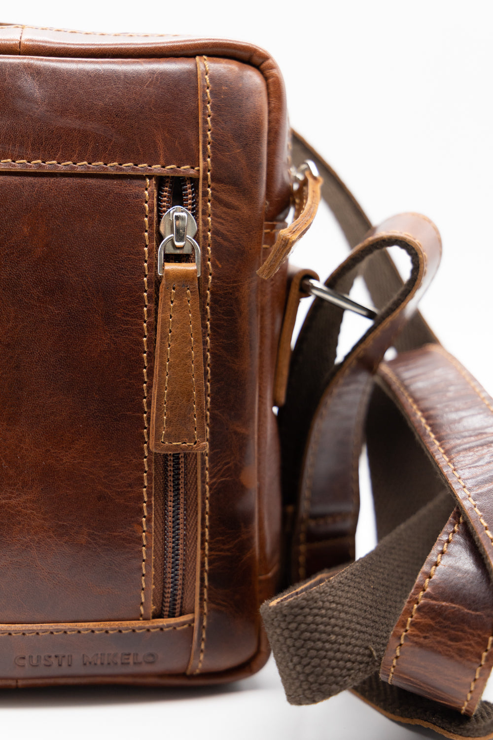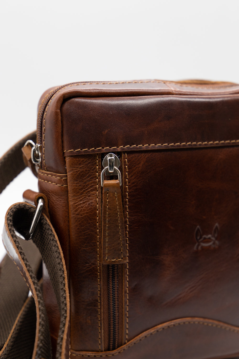 Confeccionada en cuero genuino de alta calidad, esta bandolera destaca por su resistencia, suavidad al tacto y acabados artesanales. Su diseño minimalista incluye bolsillos exteriores e interiores con cremallera para una organización eficiente de tus objetos personales como móvil, cartera, llaves o documentación.