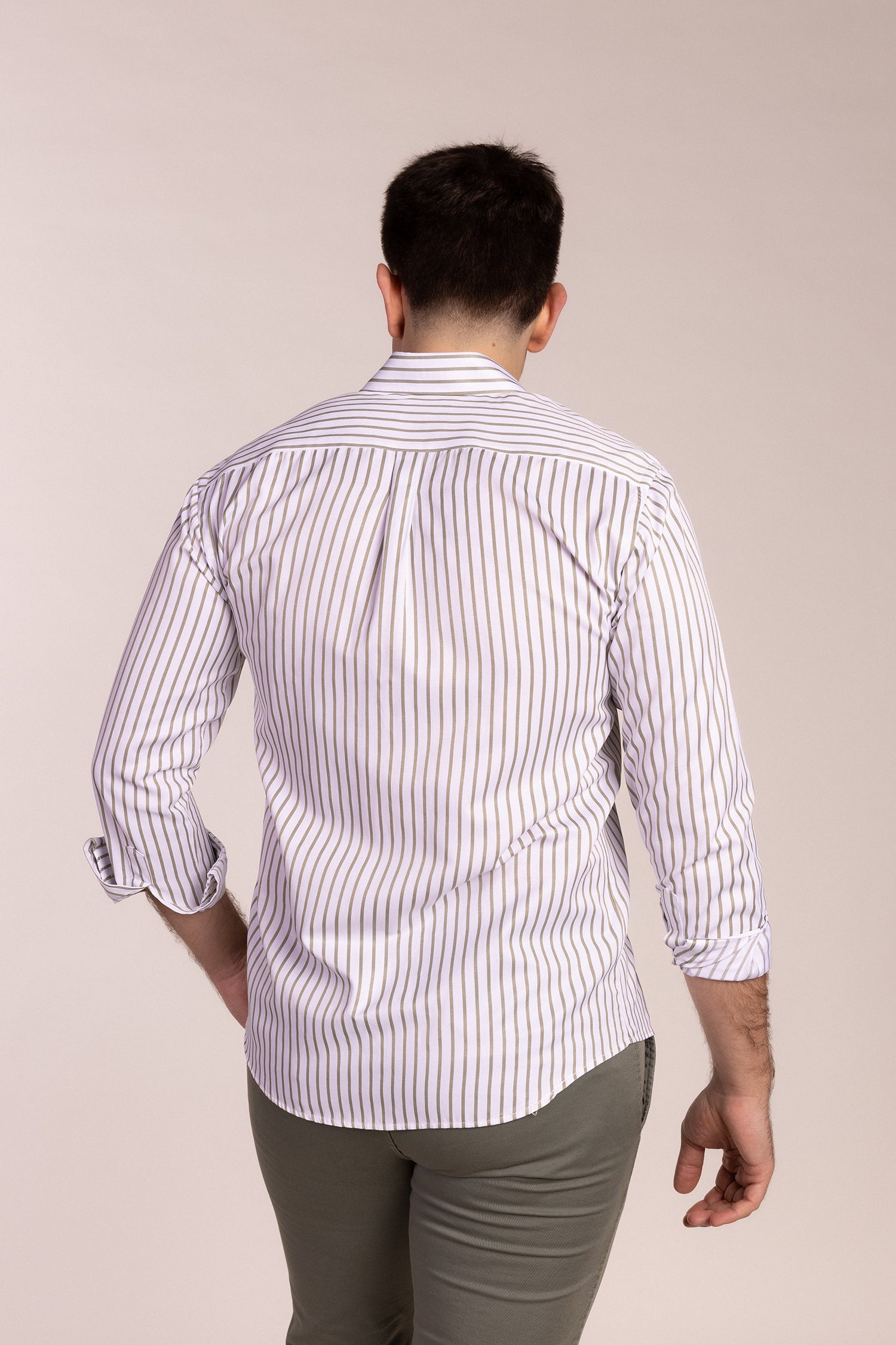 Camisa Popelin Rayas Kaki | Úbeda