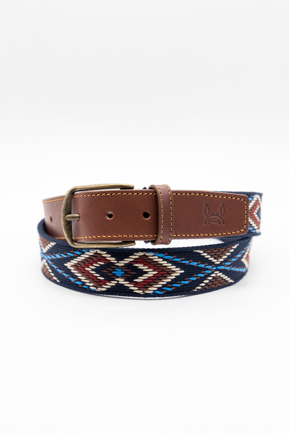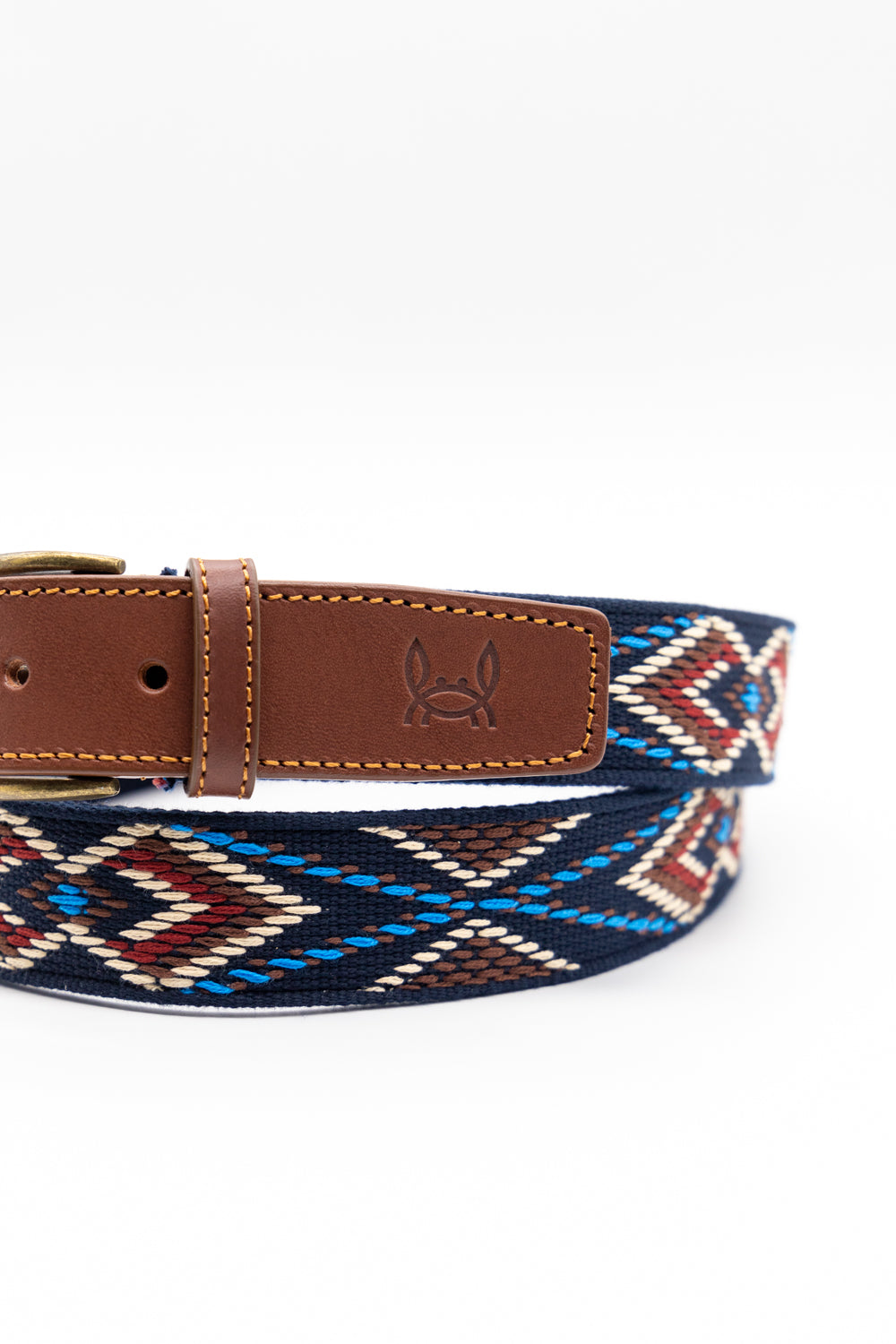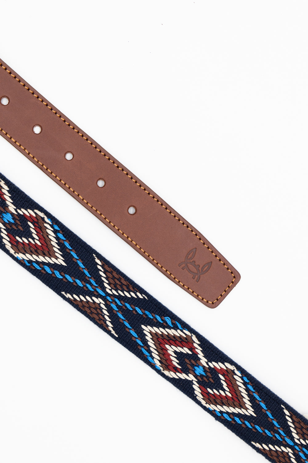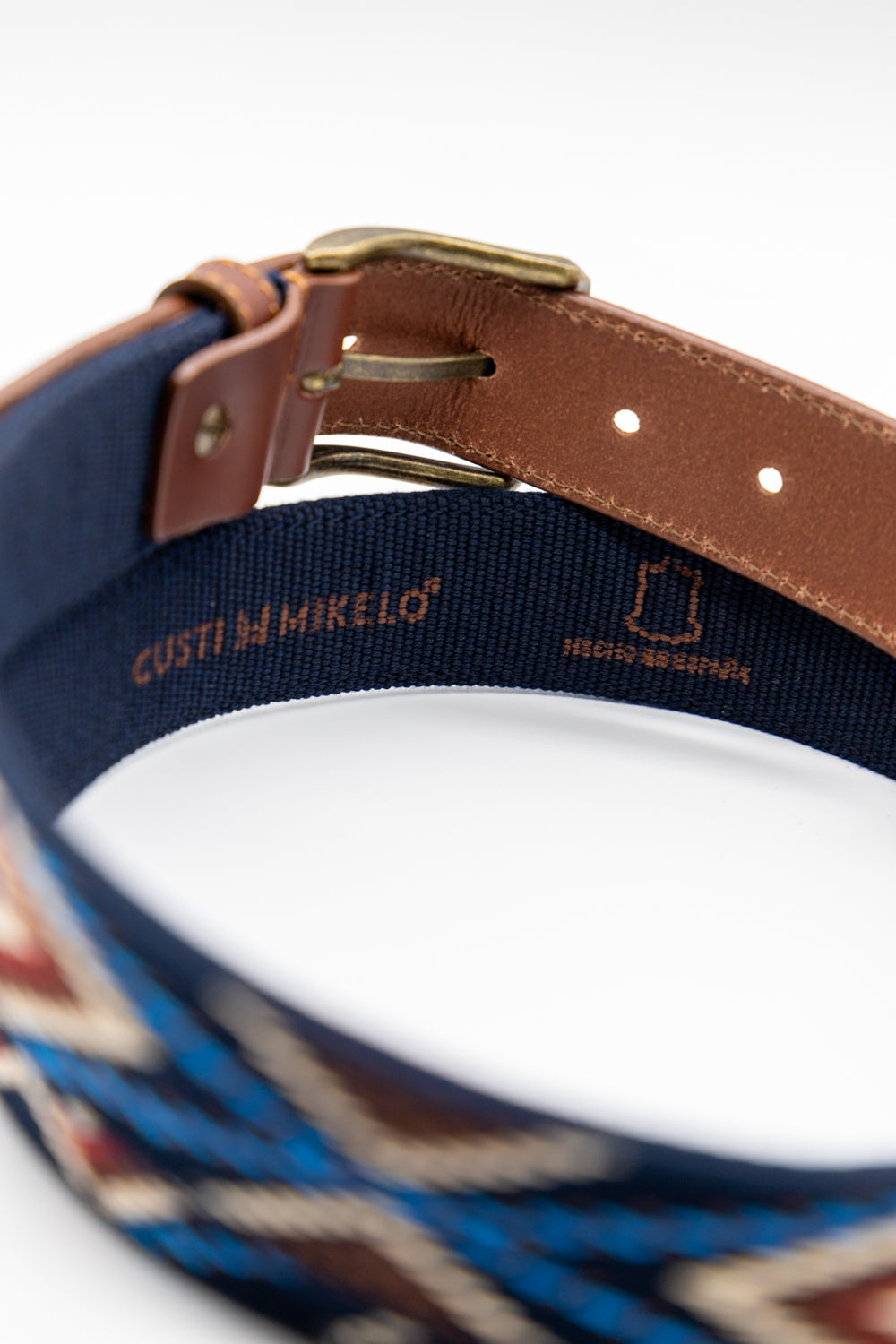 El cinturón étnico Nairú de Custi Mikelo destaca por su diseño geométrico y la armonía de sus colores, creando una pieza con un carácter único y elegante. Confeccionado en piel de primera calidad y un tejido bordado lleno de detalle, combina tradición artesanal con un estilo actual y versátil.