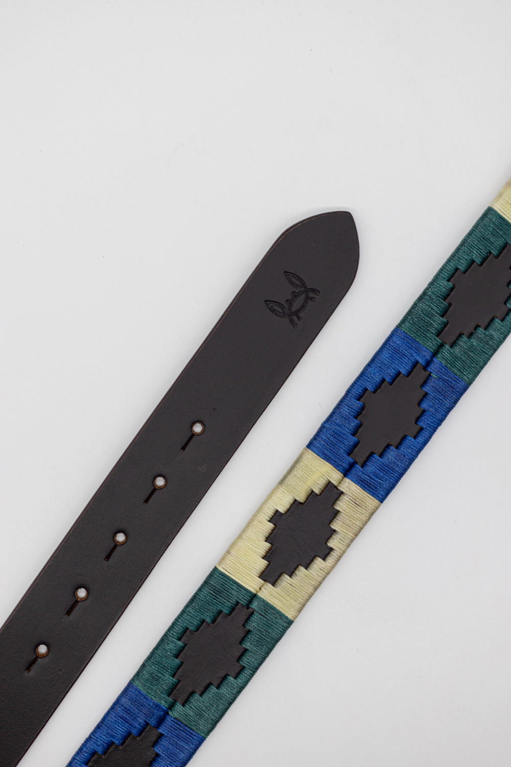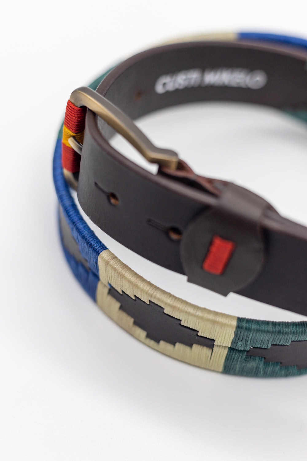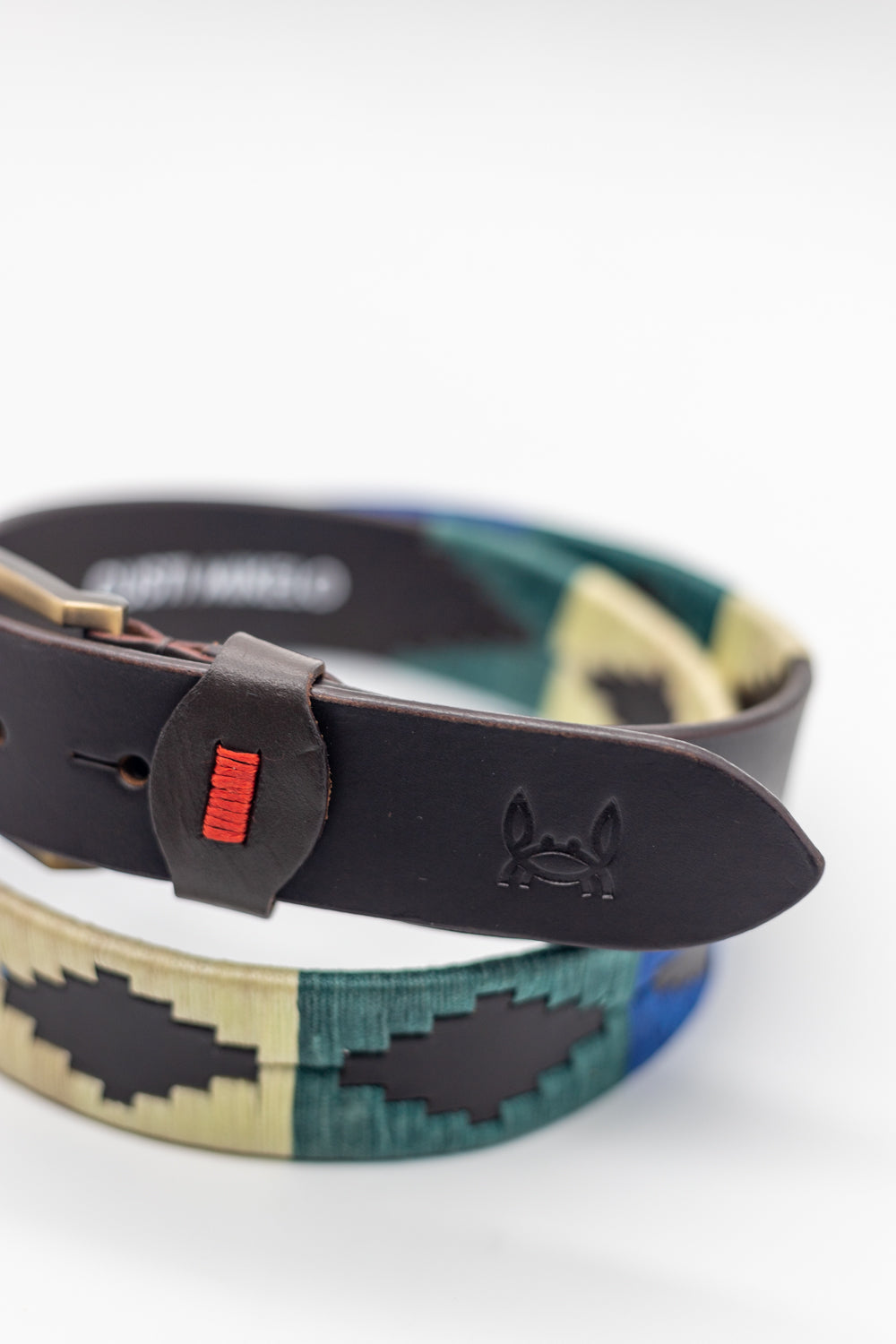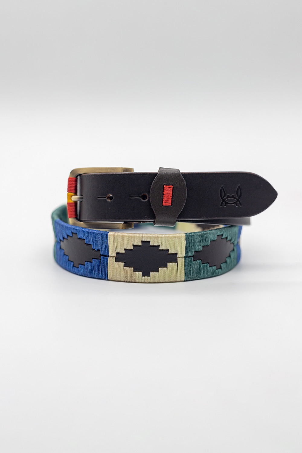 Cinturón argentino confeccionado en 100% piel. Presenta cierre con hebilla metálica. Cuenta con el logo grabado en el extremo y motivos étnicos de hilos encerados. Fabricado en España.