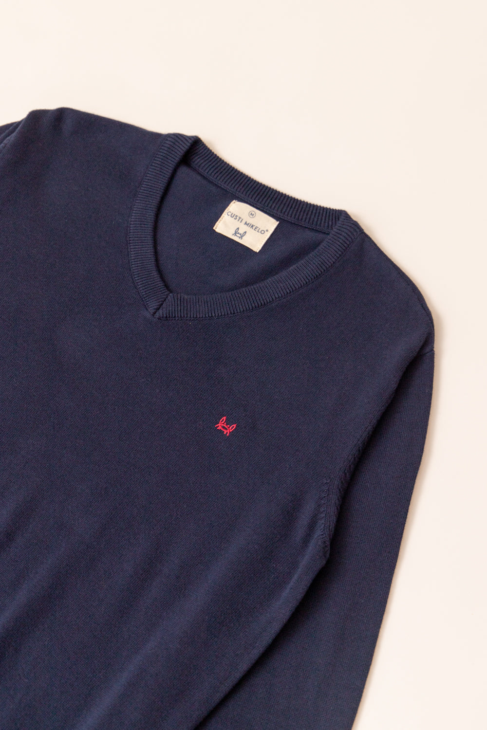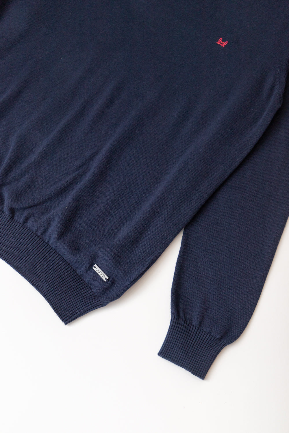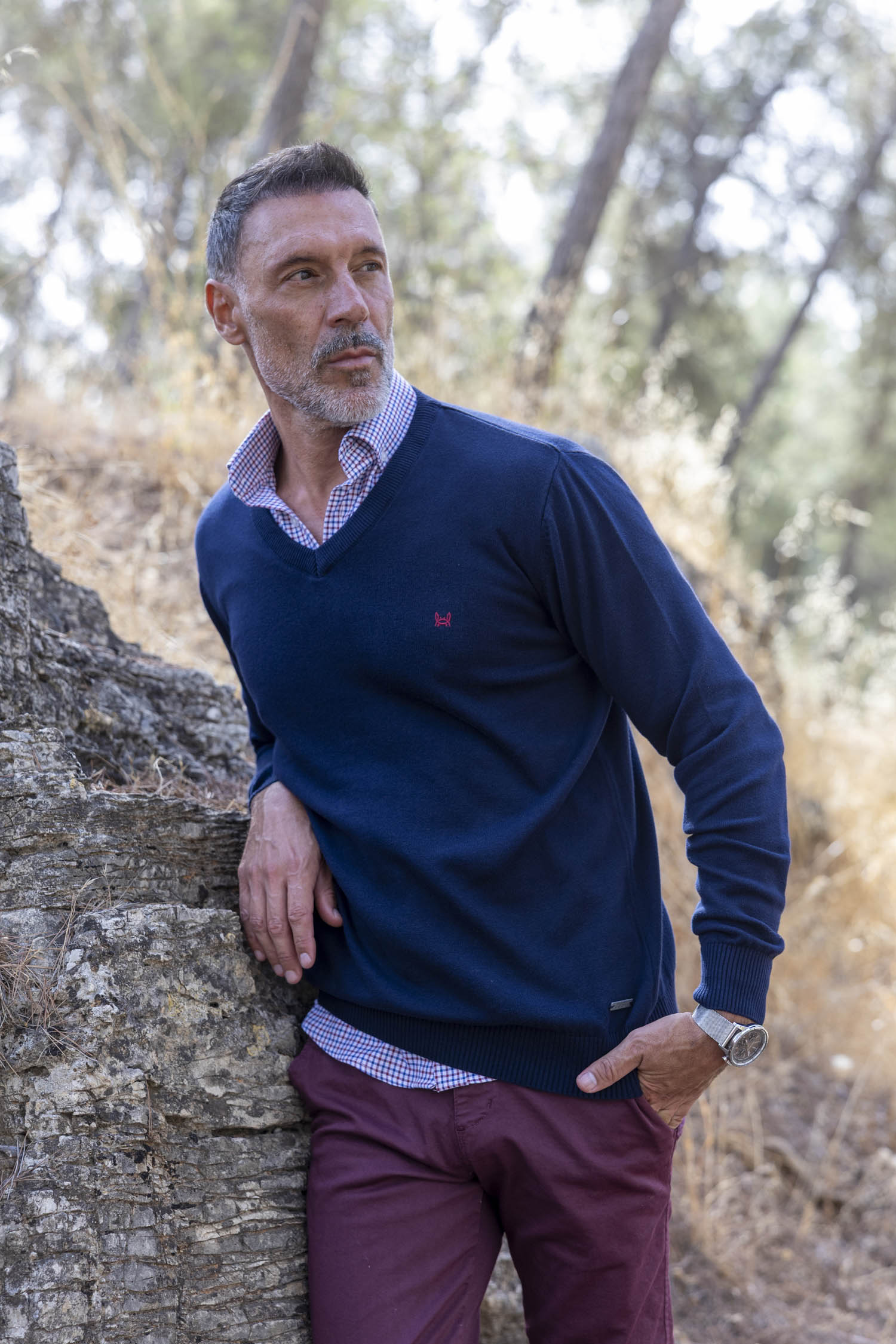 Este jersey azul marino para hombre es la prenda ideal para quienes buscan un estilo minimalista pero con personalidad, adaptable tanto al día a día como a ocasiones más especiales.