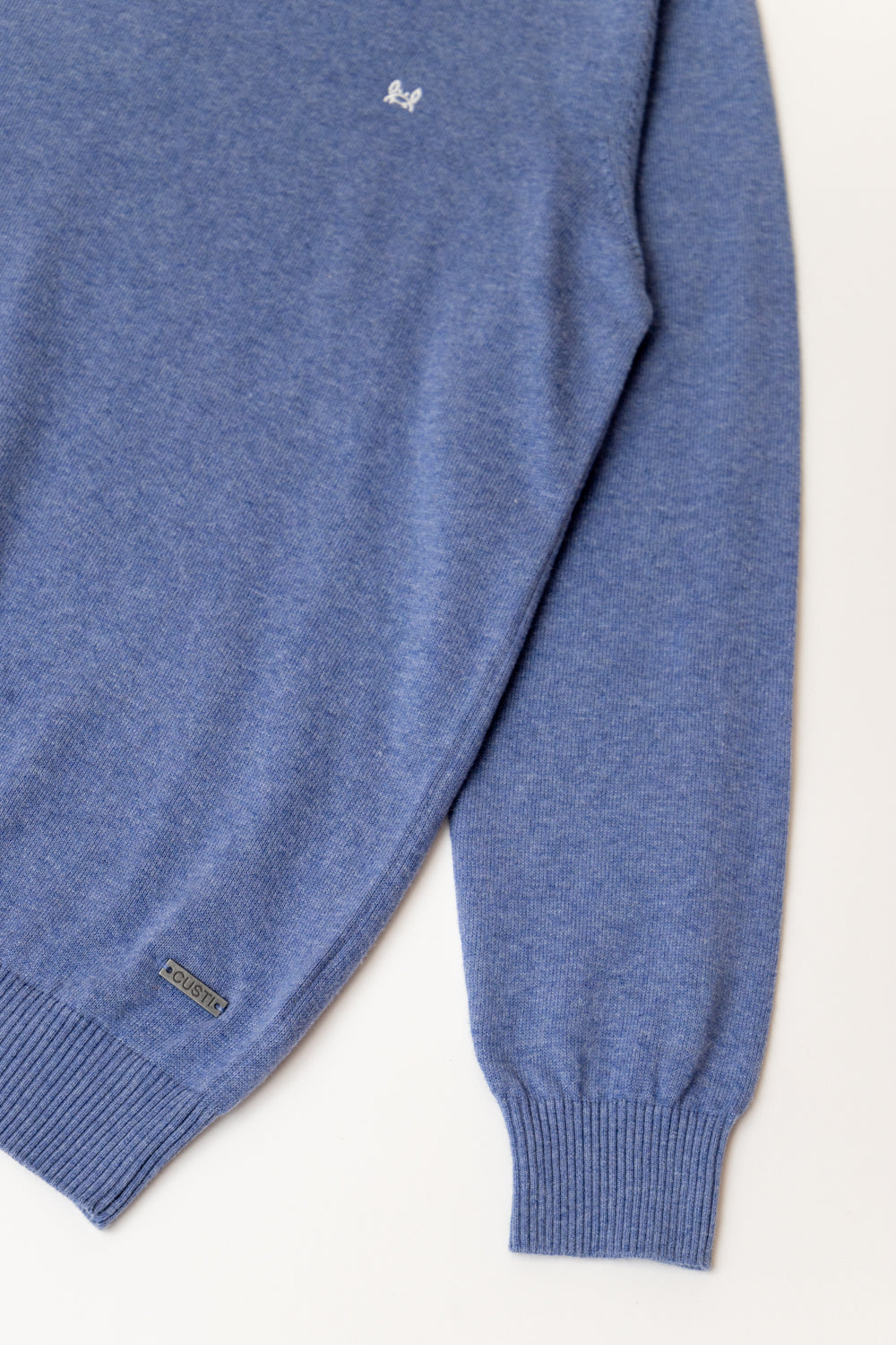 Este jersey azul medio para hombre es la prenda ideal para quienes buscan un estilo minimalista pero con personalidad, adaptable tanto al día a día como a ocasiones más especiales.