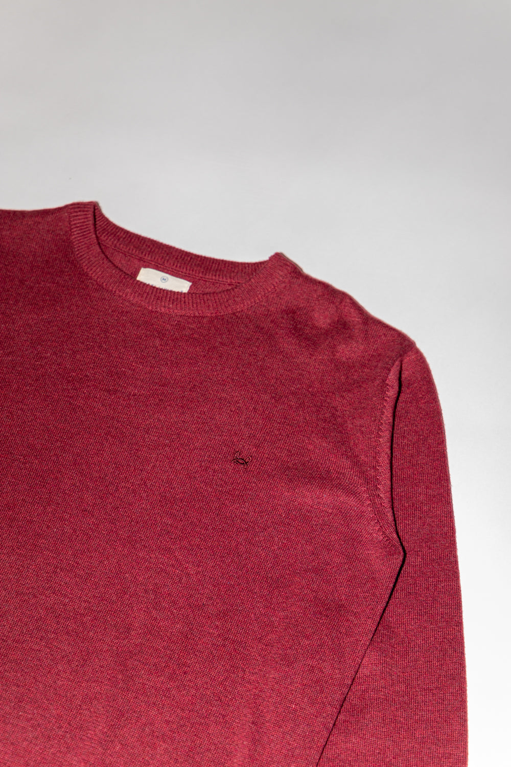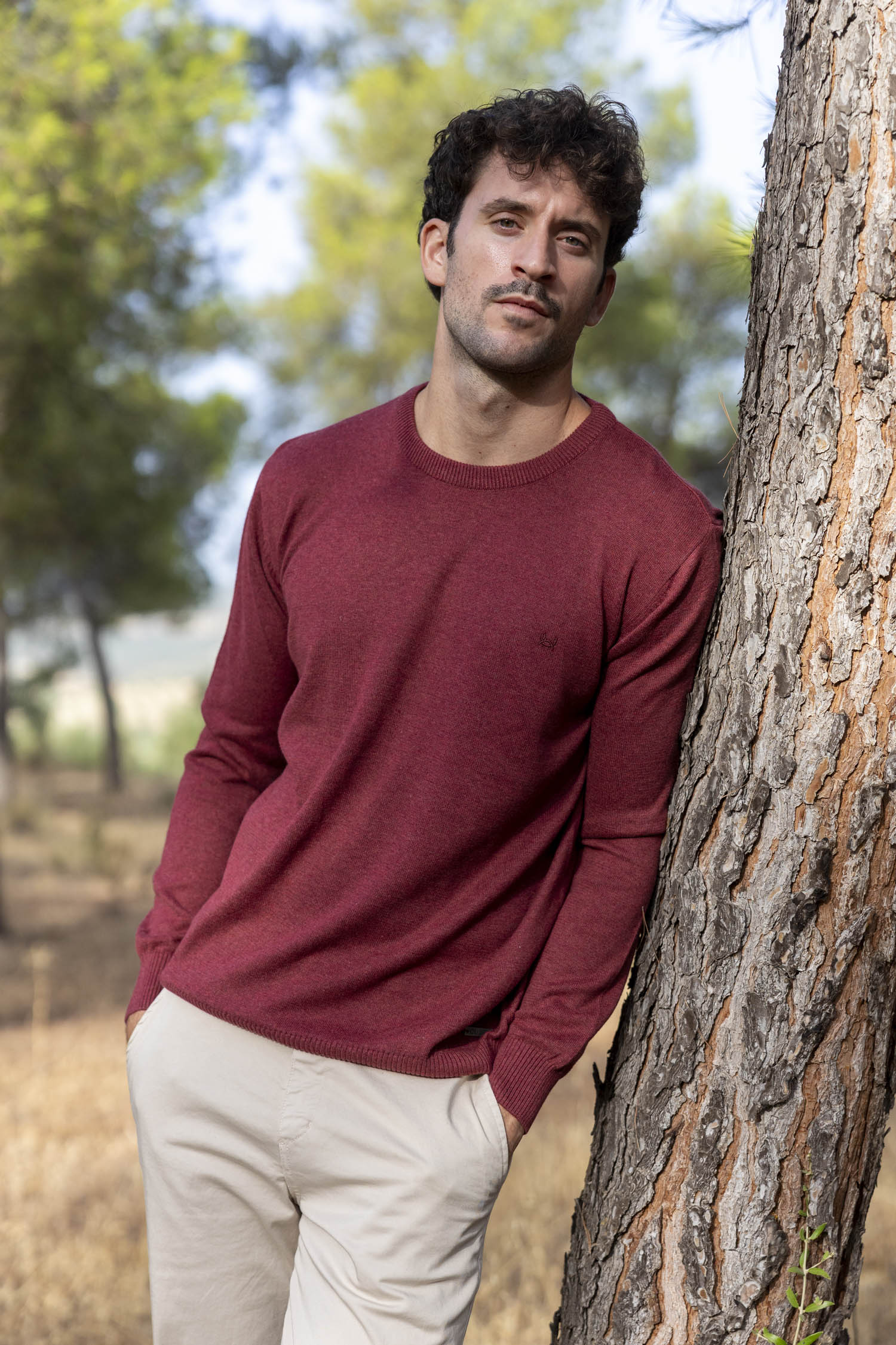 Apuesta por la sencillez con estilo gracias a este jersey básico de hombre confeccionado en 100% algodón en color burdeos, una prenda versátil que combina comodidad y diseño minimalista. Confeccionado en un tejido de punto suave, cuenta con cuello redondo clásico, ajuste regular y acabados acanalados en puños y bajo que garantizan un ajuste perfecto y duradero.