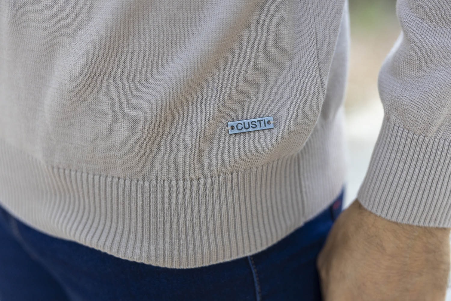 Este jersey beige de cuello vuelto es la prenda perfecta para quienes buscan un estilo atemporal, elegante y funcional, adaptado tanto al día a día como a ocasiones especiales.