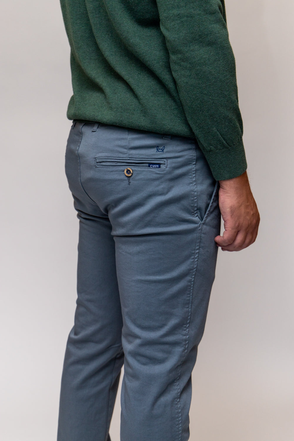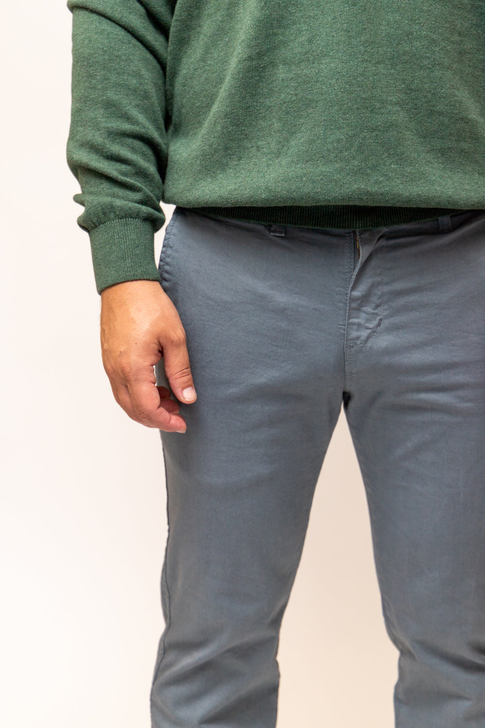 Nuestro pantalón chino de corte regular fusiona la elegancia clásica con la comodidad contemporánea. La mezcla de su confección de 97% algodón y 3% elastano ofrece un ajuste cómodo y flexible. Sus cuatro bolsillos, dos delanteros y dos traseros, aportan funcionalidad sin perder estilo. El cierre con cremallera y botón personalizado agrega un elemento distintivo. Destaca por sus detalles sutiles, como su bordado de la marca en el bolsillo trasero, o su interior con cinturilla personalizada.