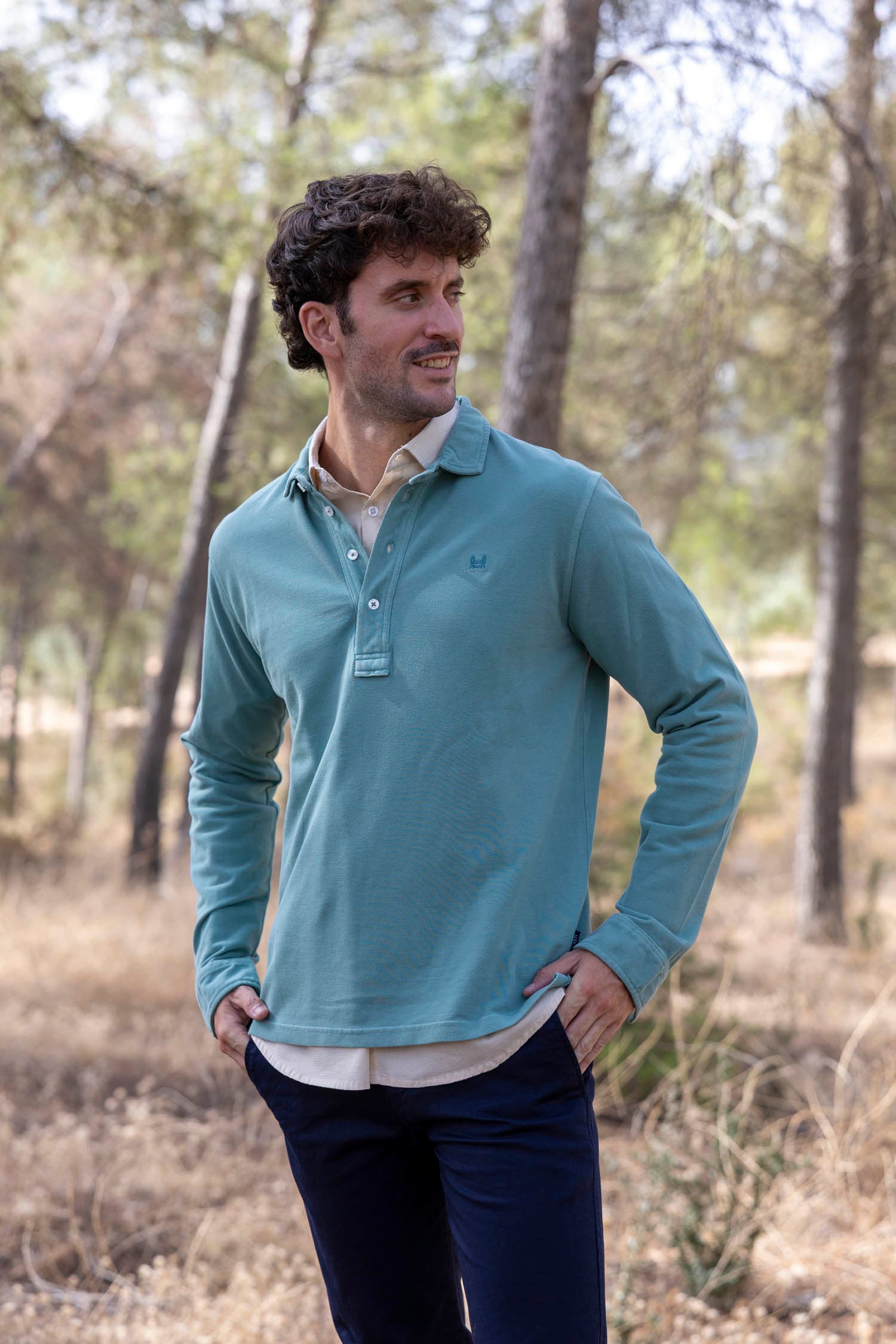 Polo de manga larga verde para hombre – Estilo casual con detalles exclusivos