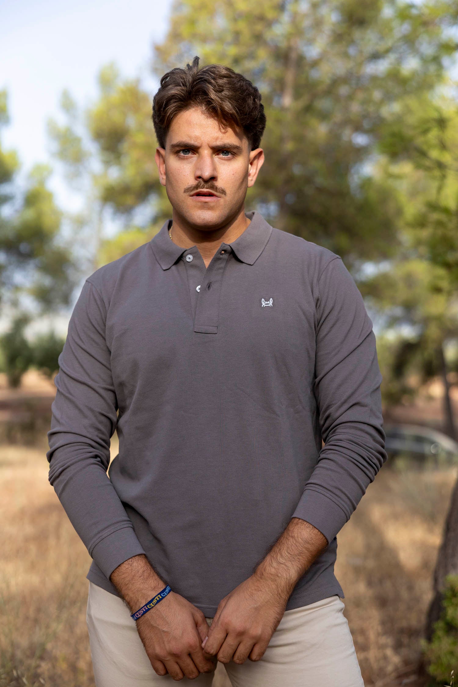 Polo de manga larga gris ceniza para hombre – Elegancia neutra y versatilidad atemporal