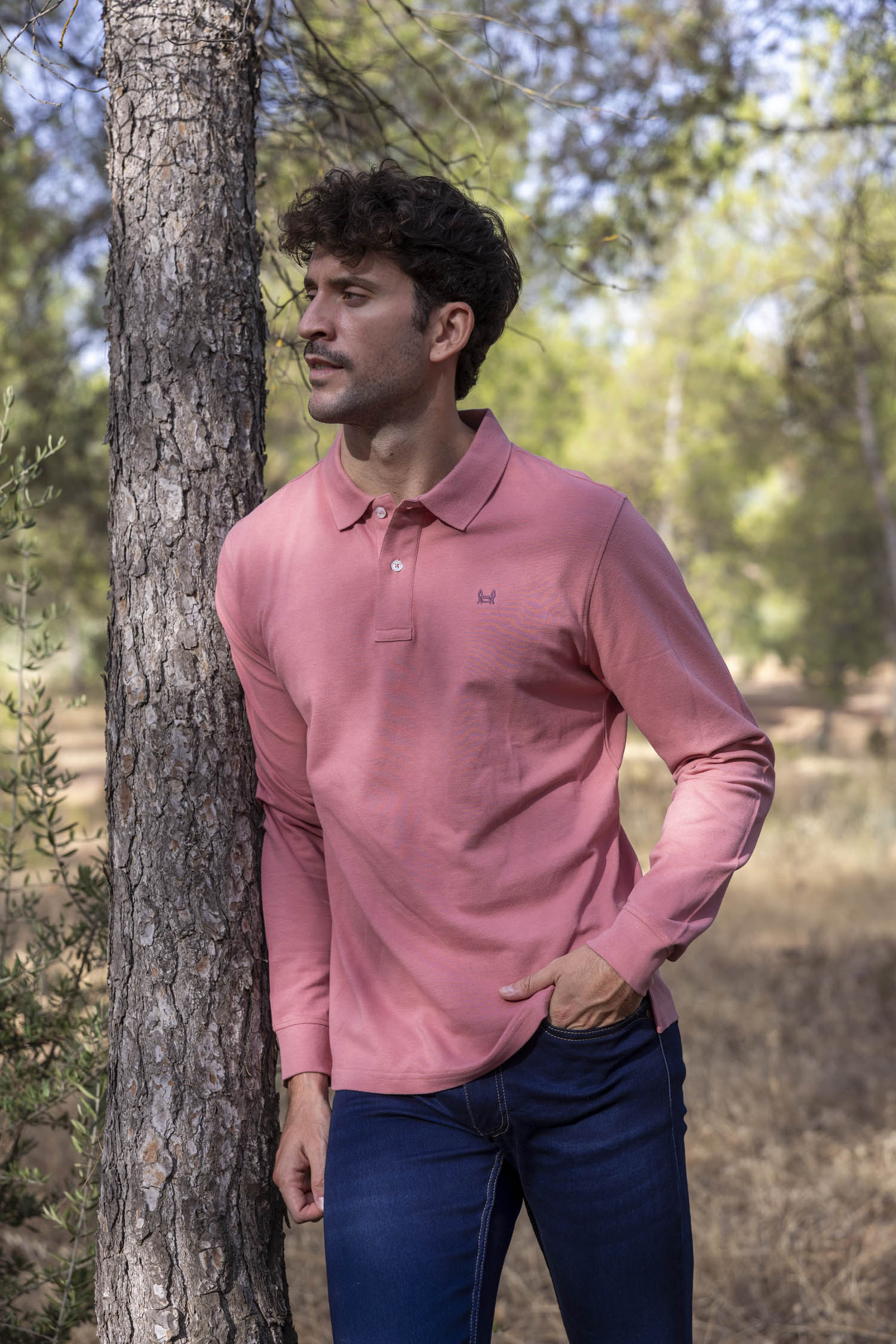 Este polo de manga larga en color rosa para hombre es la prenda ideal para quienes buscan un look actual, fresco y con personalidad. Confeccionado en algodón suave y transpirable, ofrece comodidad durante todo el día y un ajuste favorecedor. Su diseño clásico de cuello con solapa y tapeta de botones se realza con un bordado en contraste en el pecho, aportando un detalle distintivo y elegante.
